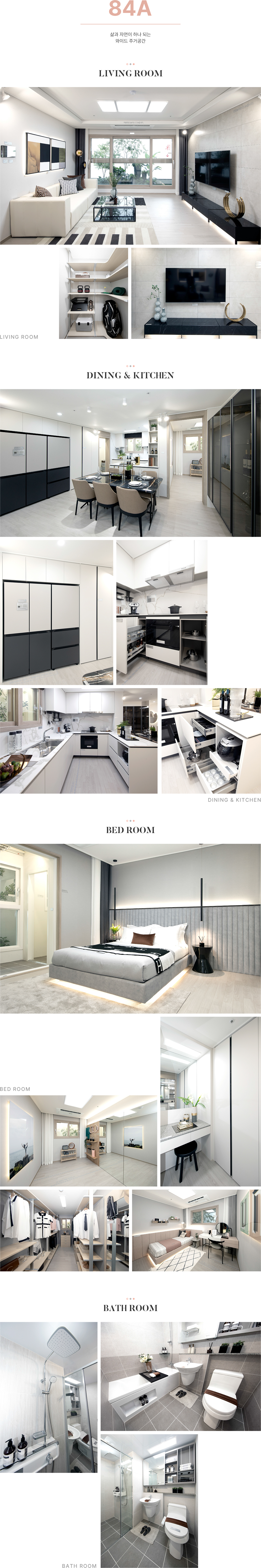 - 상기 실내 사진은 모델하우스에 설치된 84A형을 촬영한 것으로 마감재 이외의 디스플레이를 위한 전시품목이 포함되어 있으므로 계약 전 마감사양은 반드시 모델하우스에서 직접 확인하셔서 계약하시기 바랍니다.